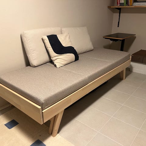 Kiteen NOTTE-vuodesohva käsinoja- ja selkänojatyynyillä.