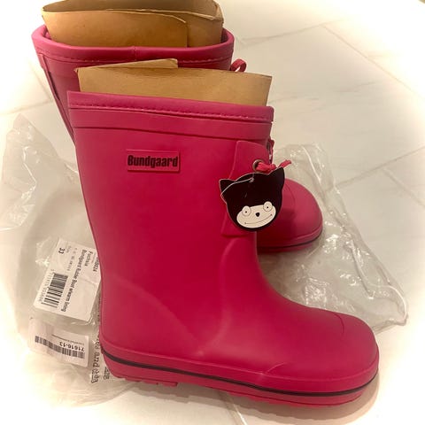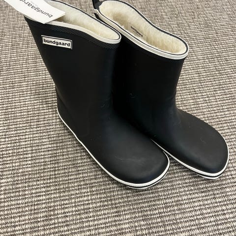 Bundgaardin erittäin hyväkuntoiset, päältä ja sisältä ehjät Charly-paljasjalkakumisaappaat. Kokomerkintä 38, vastaa merkille tyypillisesti isompaa (39). Sisämitta n. 25,5 cm. Irrotettava pohjallinen. Pidetty kasvupyrähdyksen takia vain muutamasti. Jalan mukainen lesti ja taipuisa kumipohja. Näitä isoja kokoja ei enää valmisteta valitettavasti.