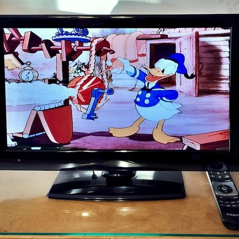 Marimekko juhlamalli tv joka numerolla 200/500 ja jalusta ja kaukosäätö. Televisiossa on tetris peli