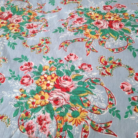 Kaunis vintage ruusukangas (käyttämätön) puuvilla satiini ei kovin ohut!