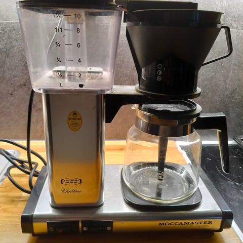 Moccamaster homeline varaosiksi tai värinvaihto projektiin. Kahvinkeittimestä puuttuu virtanappi, pannu ja sisällä oleva kumiletku.