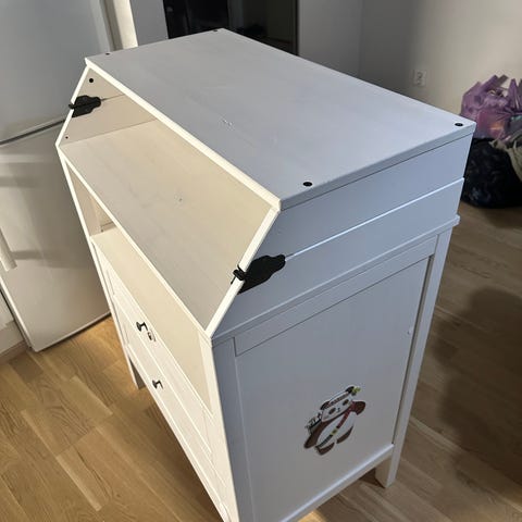 Itse huolellisesti rakennettu vaipanvaihtopöytä mikä istuu perus pystystä täytettävän pesukoneen päälle. Taso on tehty tukevaksi sekä laadukkaaksi, eli ei tule tikkuja ja käsitelty luonnollisella pellava öljyllä.