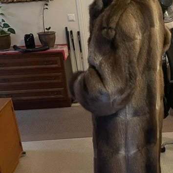 Hyväkuntoinen piisamiturkki 50-60-luvulta. Kokomerkintää ei ole mutta sopiva kokoa 40-42 käyttävälle. Olka-helmamitta 106cm, kainalo-kainalo 56cm ja hihamitta 62cm. Säilytetty aina pukupussissa.