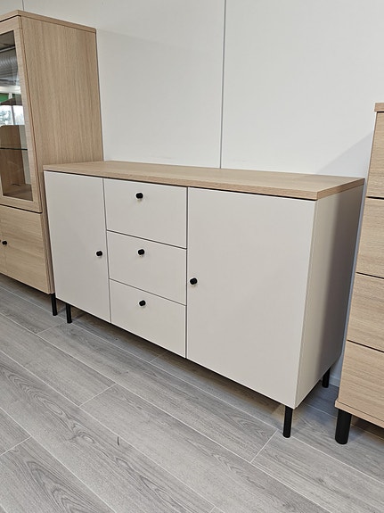 Monipuolinen Viiva-työpöytä saadaan asettamalla jalallinen kirjoitustaso ilman kiinnitystä 3-laatikkoisen valkoisen sokkelijalallisen lipaston päälle. Tarpeen tullen lipaston voi siis ottaa käyttöön helposti myös ilman kirjoitustasoa.