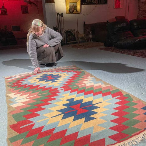 Tyylikäs Kelim lämpimillä väreillä ja klassisella kuvioinnilla.
