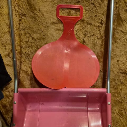 Myydään lasten lumikola, lumilapio, pulkka, Ufo-liukuri ja kolme pikkuliukuria.
