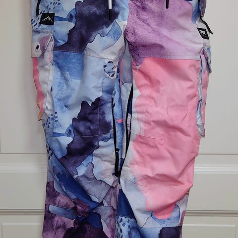 Täysin teipatut saumat, lumilukot, vyölenkit henkseleille. Paljon taskuja.alkaen 160cm mittaiselle. Menee jopa 175cm asti. Solakalle laskijalle parhaat.