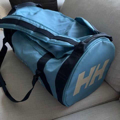 90 litran duffelilaukku, joka taittuu kokoon ja vie säilytettäessä vain vähän tilaa. Valmistettu pehmeästä, vettä hylkivästä materiaalista. Laukkua voi käyttää tavallisen laukun tapaan, ja siinä on myös olkahihnat, joten sitä voi kantaa tarvittaessa reppuna. Hyväkuntoinen, vähän käytetty.