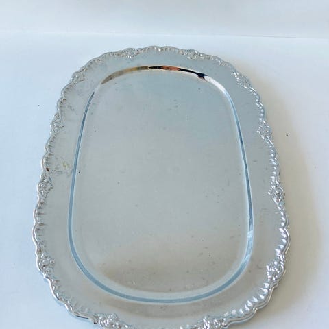 tarjotin tarjottimet vati vadit vanha vanhat wanha vintage vintagea keräily luku klassinen kromi kromia kromista peltitarjotin pelti peltiä metallitarjotin metalli metallia metallinen katelautanen Steel teräsvati tarjoiluvati tarjoilulautanen hopea hopeoitu tarjoiluun katelautanen alunen vati