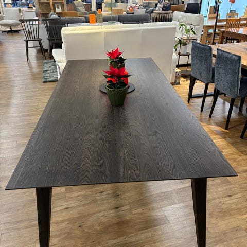 Mallipoisto myymälästä. Pöydän kansi päädyistä hieman kapeampi. Kansi valkoinen MDF ja lakattu koivurunko. Kokoleveys 195, keskeltä 100cm ja päädyt 90cm, Jalat voidaan irrottaa helposti kuljetusta varten. NOUTOHINTA YLIVIESKAN STEMMASTA.