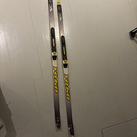 Yoko-sukset, Salomonin siteillä. Pituus 140. Hyväkuntoiset sukset. Mukana sauvat, mutta toisesta sauvasta puuttuu remmi.