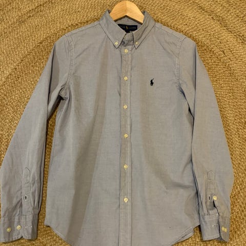 Yhden pojan vähäisen käytön jäljiltä Polon pitkähihainen sininen puuvillapaita kokoa 160 cm.