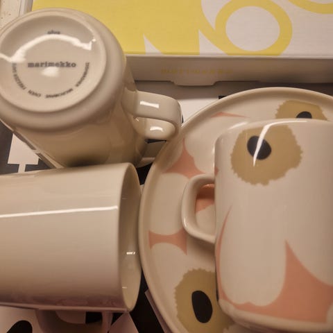 Myydään uudenveroiset Marimekon muki ja lautanen.