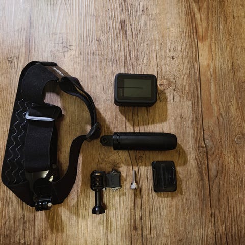 Gopro Hero8 olis kaupan kahdella akulla ja paljon muita varusteita mm. pää panta ja liivi.