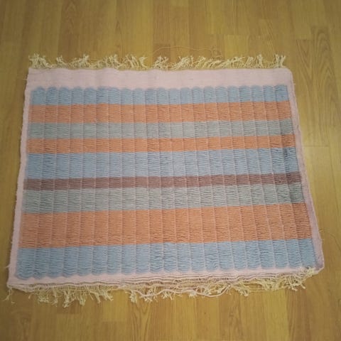 Seinävaatepohja moppilangasta. Koko: 87 x 145cm + reunat.