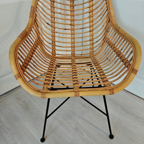 Aldorassa on kaunis aidosta rottinkista valmistettu nojatuoli pehmeillä linjoilla, taidolla käsin kudottu.