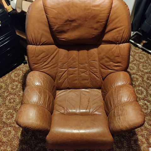 Muhkea Nahkainen Nojatuoli Erittäin siisti ja Ehjä