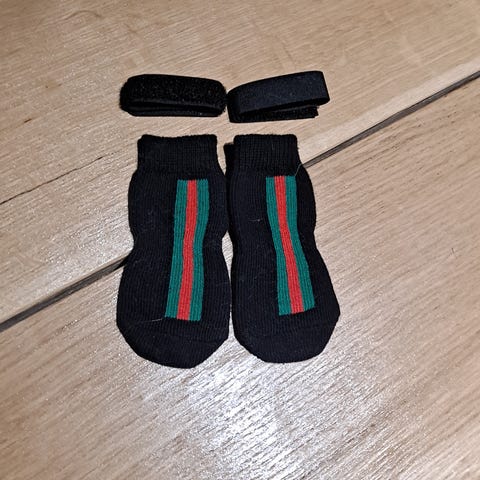 Trixien puuvillaisissa koiransukissa on liukuesteillä varustetut pohjat, jotka antavat hyvän pidon liukkailla pinnoilla, esim laminaattilattialla.