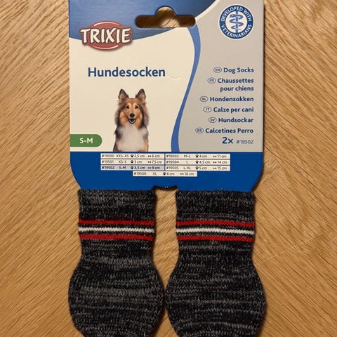 Myynnissä uudet käyttämättömät, vielä paketissa olevat Trixien liukuestesukat pienelle koiralle, koko XS-S, kaksi sukkaa paketissa.