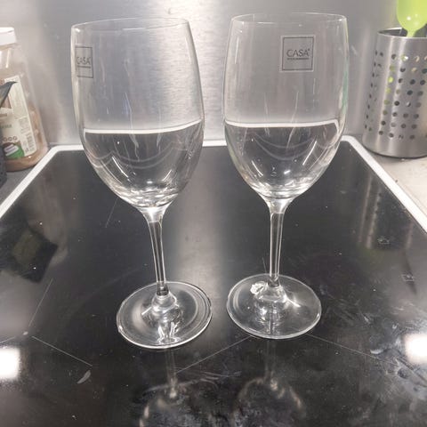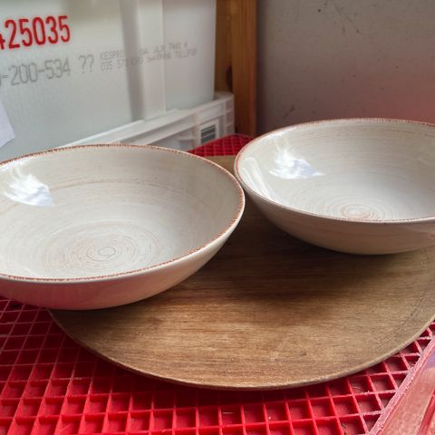 Yhdessä ruokalautasessa kolhu reunassa, muuten täysi ehjä astiasto.