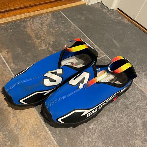 Murtsikka monojen kävelysuojat. Helppo pukea, pitävä pohja, suojaa monojen kulumista, joustavaa neopreeniä. Ei käytetty.