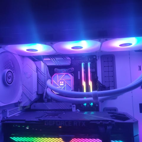Testimielessä myyntiin pakettina, näyttävä ja hyvin hengittävä uudenkarhea: kotelo, tuulettimet sekä 360mm aio jäähdytin. Kuvan muut komponentit ei ole kaupan, vain kotelo, tuulettimet ja aio-nestejäähdytin. AIO:n blokki ja tuulettimet on rgb:llä varustettu mutta kuvissa ei ole kytkettynä.