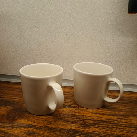 Iittala Teema mukit valkoisella värillä. Materiaali on keramiikka.
