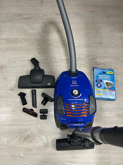 Tehokas ja siisti Dyson kuvan tarvikkeilla ja alkuperäisellä käyttöohjeella.Ä
