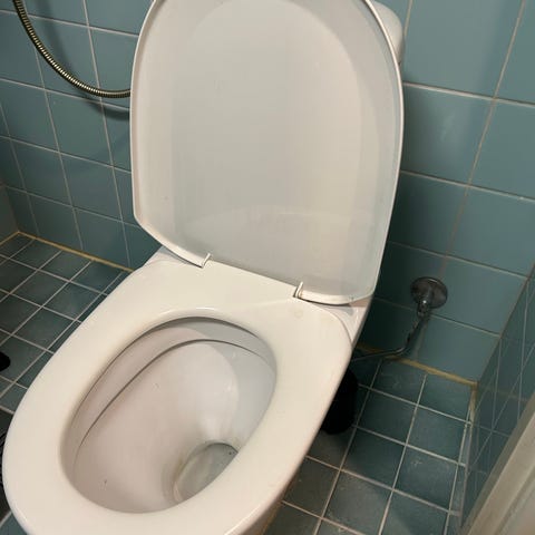 Wc-istuin valkoisella värillä. Sisältää istuimen ja huuhtelusäiliön. Soveltuu kylpyhuonekäyttöön.Kuin uusi
