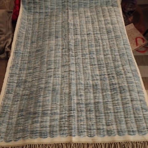 Kirsti Ilvessalon Palokärki-ryijy, 125 x 177 cm. Kaipaa puhdistusta ehkä pölystä. Itse en uskalla moiseen ryhtyä, kun ei ole tarpeeksi taitoa moiseen. Tinkiä saa ja nopeat kaupat on haaveissa.