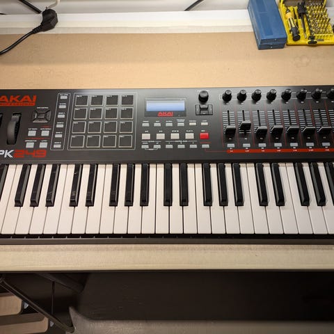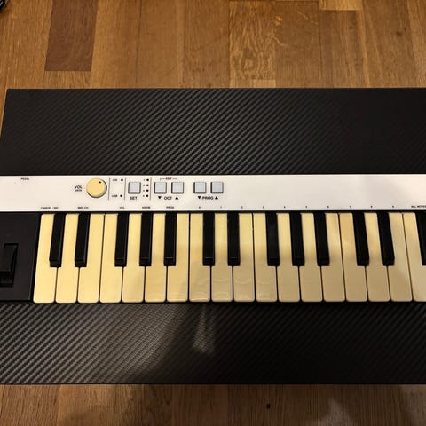 37 täysikokoista kosketinta, pitch‑ ja modulaatiopyörät sekä perussäätimet.