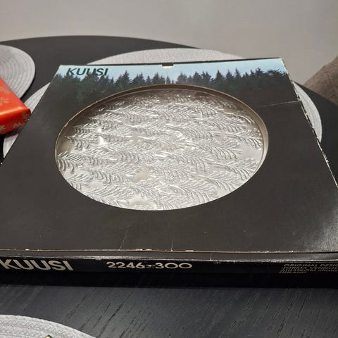 Iittalan Kuusi-tarjoilulautanen, suunnittelija Jorma Vennola. Erittäin hyvä kunto. Halkaisija n. 28 cm.