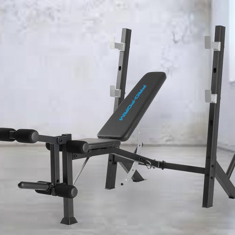 Sopii kotikuntosalille monipuoliseen voimaharjoitteluun (penkkipunnerrus, käsipainot, ylä- ja alavartalon harjoitukset).