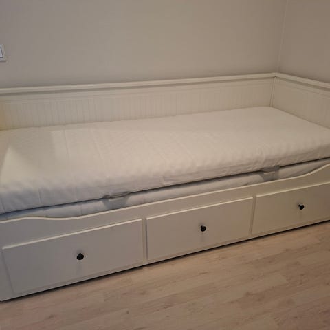 Myydään IKEA Hemnes sohvasänky 80x200. Väri valkoinen. Saa levitettyä 160cm vuoteeksi. Alla kolme tilavaa laatikkoa esim. petivaatteille. Patjat ei kuulu kauppaan. Myydään tarpeettomana. Meillä ei ole mitään eläimiä eikä meillä tupakoida. Meillä on uusi, siisti koti.