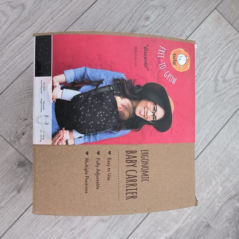 Kaksi ergonomista kantoasentoa (edessä kasvot kantajaan päin tai selässä).