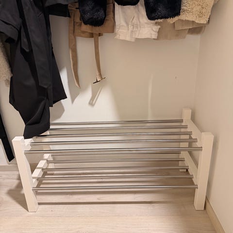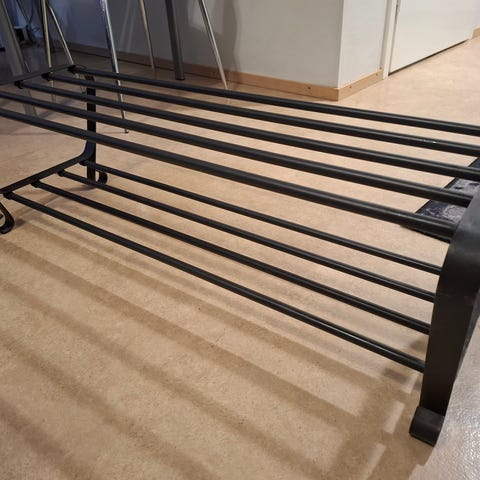 Hyväkuntoinen musta kenkäteline, muuton alta pois