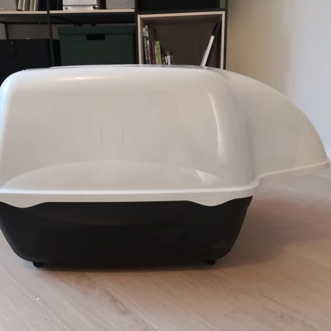 Vähälle käytölle jäänyt kissan vessa, jonne kissa kulkee kannen aukosta. Nouto Espoo Viherlaakso.