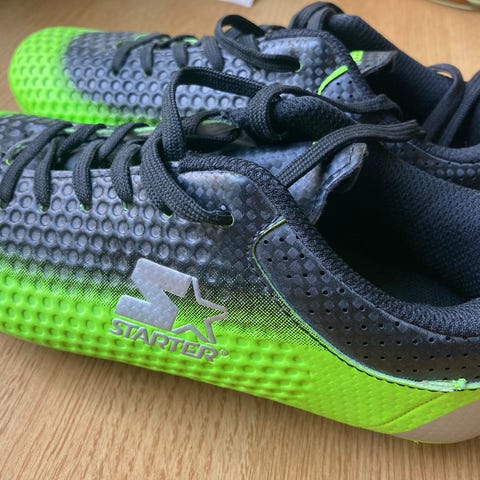 Starter jalkapallokengät koko 36, väriltään musta ja vihreä. Mukana Starter säärisuojat, koko S (120-140 cm). Kerran käytetyt jonka jökkeen todettu ettei harrastus ollutkaan mieleen. Nouto karakalliosta.