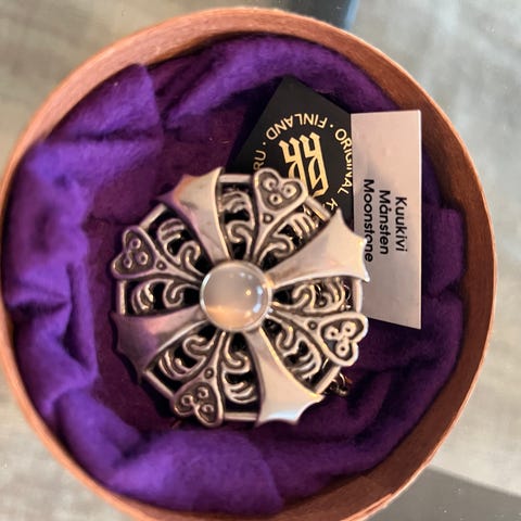 Kaunis Kalevala Korun hopeinen rintaneula/riipus. Tätä väriä on ollut harvoin tarjolla.