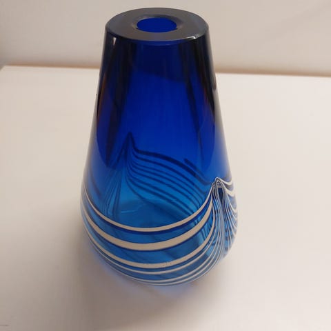 Vihreä pieni lasimaljakko. Kunto hyvä. Saattaa olla suomalaista vanhaa lasia tai sitten ei. Saa myös noutaa Jyväskylän keskustasta.