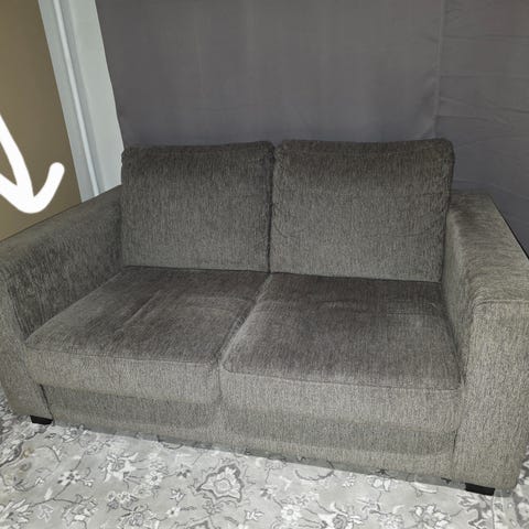 kahden istuttava sohva, muuten hyvä mutta muutama pieni tahra käsinojissa