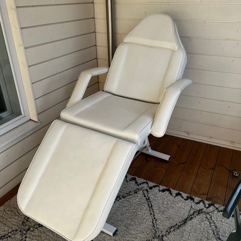 -soveltuu erilaisiin hoito- ja hierontatarkoituksiin tarjoten tukevan alustan,jonka saa myös ns. pyramidi asentoon. Rakenne on tukeva metallinen,jonka siirtelyä sujuvoittaa laskettavat pyörät! pöydässä on pehmustettu päätytyyny&kasvo osa lisämukavuutta varten! Ps.myyn Huhtikuuksi ja vaihdossa harkitsen jakkara plinttiä....Tarjoa!