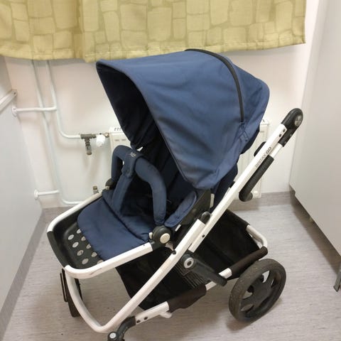 Muutoin täysin toimivat ja suhteellisen siistikuntoiset, mutta oikea takarenkaan muoviosa on jostain syystä päässyt hieman vääntymään, jonka vuoksi renkaan kumi ei pysy täydessä ilmassa kuosissaan. Nopealla etsinnällä en löytänyt uutta rengasta, saattaa olla myös korjattavissa. Meillä myös toiset rattaat, eikä jakseta alkaa korjailemaan tai etsimään vaihtorengasta.