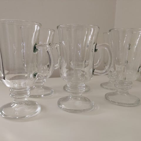Kuumajuomalasit 4 kpl, "nahkainen vyö" lähtee irti, voi irrottaa pesun ajaksi, voi pestä tiskikoneessa.