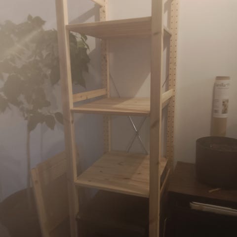 Uudenveroinen Ivar taittopöytä/hylly. Vanhalla tukevammalla kaksijalkaisella pyötäosalla (Ikea myy nykään vain yksijalkaista taittopöytää). Voi yhdistää myös muiden Ivar osien kanssa esim. osaksi kirjahyllyä. Pöytäosan syvyys 80 cm, ylempänä näkyvillä muut mitat kun pöytä on kiinni.