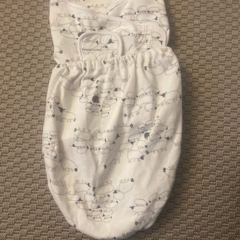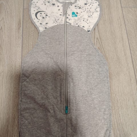 M-kokoinen Swaddle Up irrotettavilla hihoilla. Jäi vähälle käytölle kun vauva oppi kääntymään eikä käytetty enää ilman hihoja. Hiukan pesuhaitua ja painettu tuotemerkki rinnassa kulahtanut. Tog 1.0