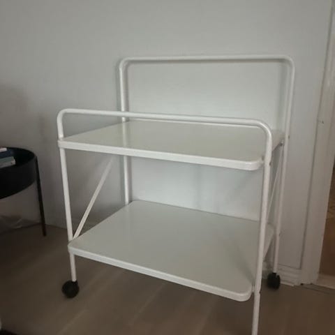 Myydään hyväkuntoinen kolmitasoinen pyörillä oleva sivupöytä tai vastaavaksi tulkittava. Puutasojen pinnoilla muutamia jälkiä. Vain nouto, maksutapana mobilepay tai käteinen.