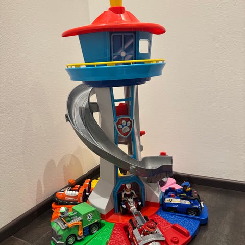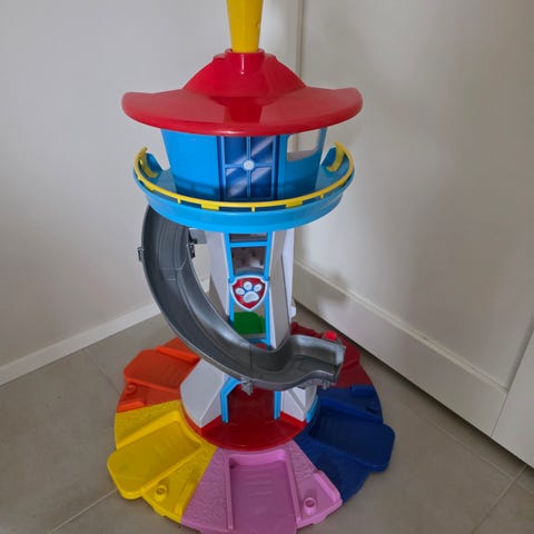 Ryhmä Hau vahtitorni ja hahmoja. Leikkitalo tarjoaa erilaisia aktiviteetteja ja leikkimahdollisuuksia lapsille. Valot ja äänet toimivat. Korkeus 83 cm.