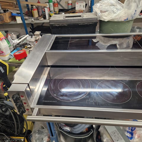 Constructa -merkkinen keraaminen liesitaso + Erillisuuni. Käyttöönottovuosi 2012. Toimivia, mutta käytössä kuluneita.