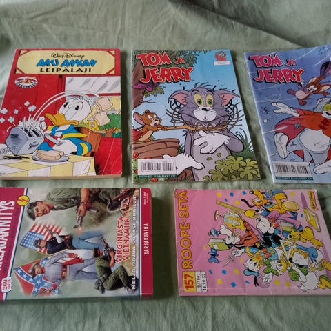Pari pahvilaatikollista sarjakuvia vuosilta 2002-2017 (karsittu huonokuntoiset pois). Pääasiassa Aku Ankkaa, mutta seassa myös muutama Tom & Jerry sekä Nalle Puh.